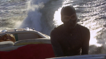 The entire car vanishing in the smoke and confusion, hoisted aloft by a crane and its contents thrown to a waiting speedboat which races to a rendezvous then a bait and switch to evade the pursuing helicopter, it is the work of the criminal mastermind Diabolik, the bane of Ginko’s life, always one step ahead and vanishing after every heist with no trace of his whereabouts or true identity, law enforcement requiring more extreme measures if he is to be apprehended.