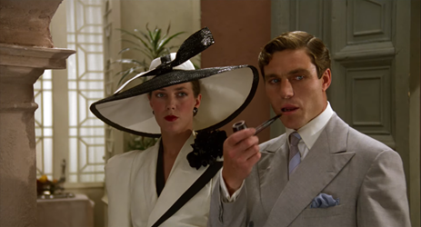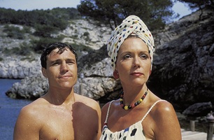With cocktails and barbed resentment at eight sharp, all are conspicuously wealthy and dress to be noticed, Maggie Smith and Diana Rigg aiming to outshine each other as former stage rivals Daphne and Arlena, while Jane Birkin pouts under shrouding layers as downtrodden Christine, her impossibly handsome and impossible to control husband Patrick played by Nicholas Clay, while Roddy McDowell is Rex, bitter that Arlena will not sign the release on his biography and that his swimsuit is not as revealing as Patrick’s daring trunks.