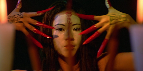Such nitpicking forgivable in the wake of the bizarre fetishism of the inevitable exorcism scene, blood, breasts and provocative dancing, also of interest is that despite sole credit being given to composer Eddie Wang that the soundtrack primarily consists of cues quite obviously “borrowed” from Jerry Goldsmith, from Alien, themes already partially repurposed from Goldsmith’s own Freud, and Star Trek The Motion Picture.