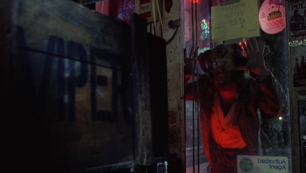 The debt escalating up to the scrapyard where psychotic Vietnam veteran Bronson operates his shady business of intimidation, a man who does not forgive, Fred’s brother Kevin lives inside the tyre pit, sympathetic secretary Wendy running interference so he is not targeted or thrown out, while elsewhere in the ‘hood liquor store owner Eddie finds a dusty crate containing bottles of Tenafly Viper, hawking them for only a dollar a pop.