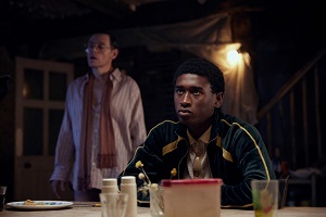 Grady (Sam Claflin) obvious as the man who will bring trouble to them all, incapable of moderation in his behaviour, drinking to excess, goading and harassing those around him, he trusts none of the others but in particular the rodent-faced Numbers (Burn Gorman) who prefers the company of Cilla Black to the other men, while Royce (Tienne Simon) is newly inducted into the fraternity, finding his feet, overwhelmed and easily swayed when the wind blows across the barren land of thorns.