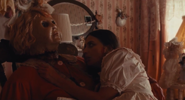 Transferred to lush Tennessee but maintaining the warm colour palette of golds and reds, nature in contrast to the interior of the lone house in the woods, overexposed and grimy as the flies hover around decaying flesh, Max the Impaler is the titular Dolly, masked and ruled by impulse, emotionally volatile as she tries to coddle her new toy and coax it to play then raging when Macy remains defiant.