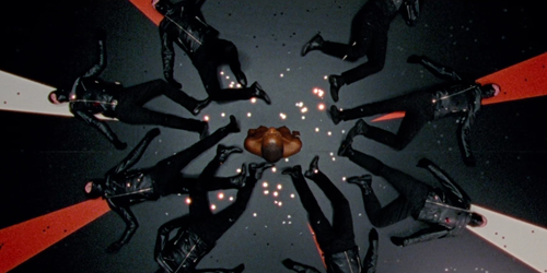 With layers of art, artifice and illusion in both the film and the character of John D and his nemesis, the deadly leather-clad Serpentik wearing masks behind her masks and he himself replaced by a younger version in the same way as James Bond is reinvented for new audiences, there are aspects of Danger Diabolik, Modesty Blaise, Diva and even Psycho in the costumes, locations and details, and throughout images and events echo.