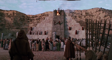 Shot in California and the Valley of Fire State Park in Nevada, the production values are high, the pyramid where sacrifices are made to Ar built full scale though the surrounding city is a forced-perspective miniature, the chambers, labyrinths and dungeons beneath lit by flickering fire, the effects practical as flame rains down on the stunt performers in the final scene and Marc Singer a practiced swordsman and martial artist, carrying the otherwise undemanding role of Dar with ease.
