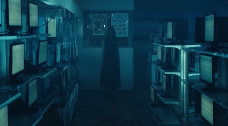The scenes within the convenience store mimicking the style of the game, the camera presenting Yukino’s point of view as she shuffles about her duties, stretching tedious tasks to fill the long hours, it is a gimmick which, like found footage, is better when deployed judiciously, here only serving to draw attention to the numerous shortcomings of Yoshimasa Akamatsu’s overly derivative script, the copying of footage to break the curse lifted from Ringu, the illicitly recorded grainy black and white personal footage a hallmark of Lost Highway and the wide-eyed silent child with the bowl-haircut who appears under counters then vanishes, the mystery woman offering amulets of protection and the scary long-haired lady under the bed generic staples of J-horror.
